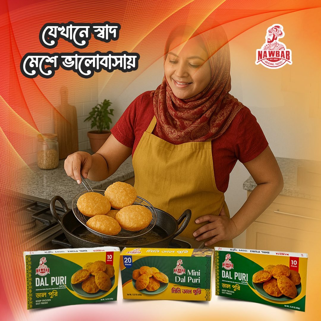 বাংলার প্রতিটি পরিবারের রান্নাঘরে দাল পুরির আলাদা একটা আবেগ আছে। সকালে নাস্তা হোক বা বিকেলের আড্ডা—গরম দাল পুরির গন্ধ মুহূর্তেই সবাইকে টেবিলে টেনে আনে। সেই ঘরোয়া স্বাদ, মা-বাবার আদর, আর ভাইবোনের খুনসুটিকে মনে করিয়ে দেওয়ার মতোই এক চেনা নাম—নওয়াব দাল পুরি।